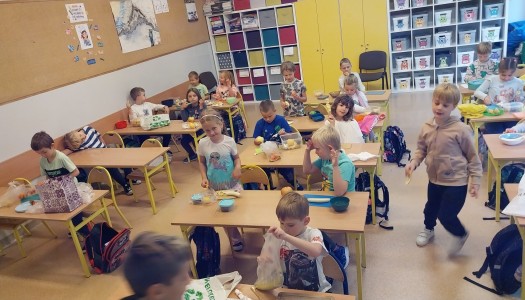 Podczas dzisiejszych zajęć uczniowie klasy 1a przygotowywali pyszne i zdrowe przekąski – owocowe szaszłyki oraz sałatkę owocową.Dzieci z zaa...