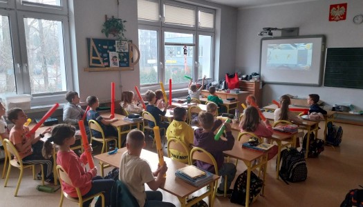 Podczas zajęć muzyczno-rytmicznych uczniowie klasy 2a aktywnie uczestniczyli w ćwiczeniach rozwijających poczucie rytmu i wr...
