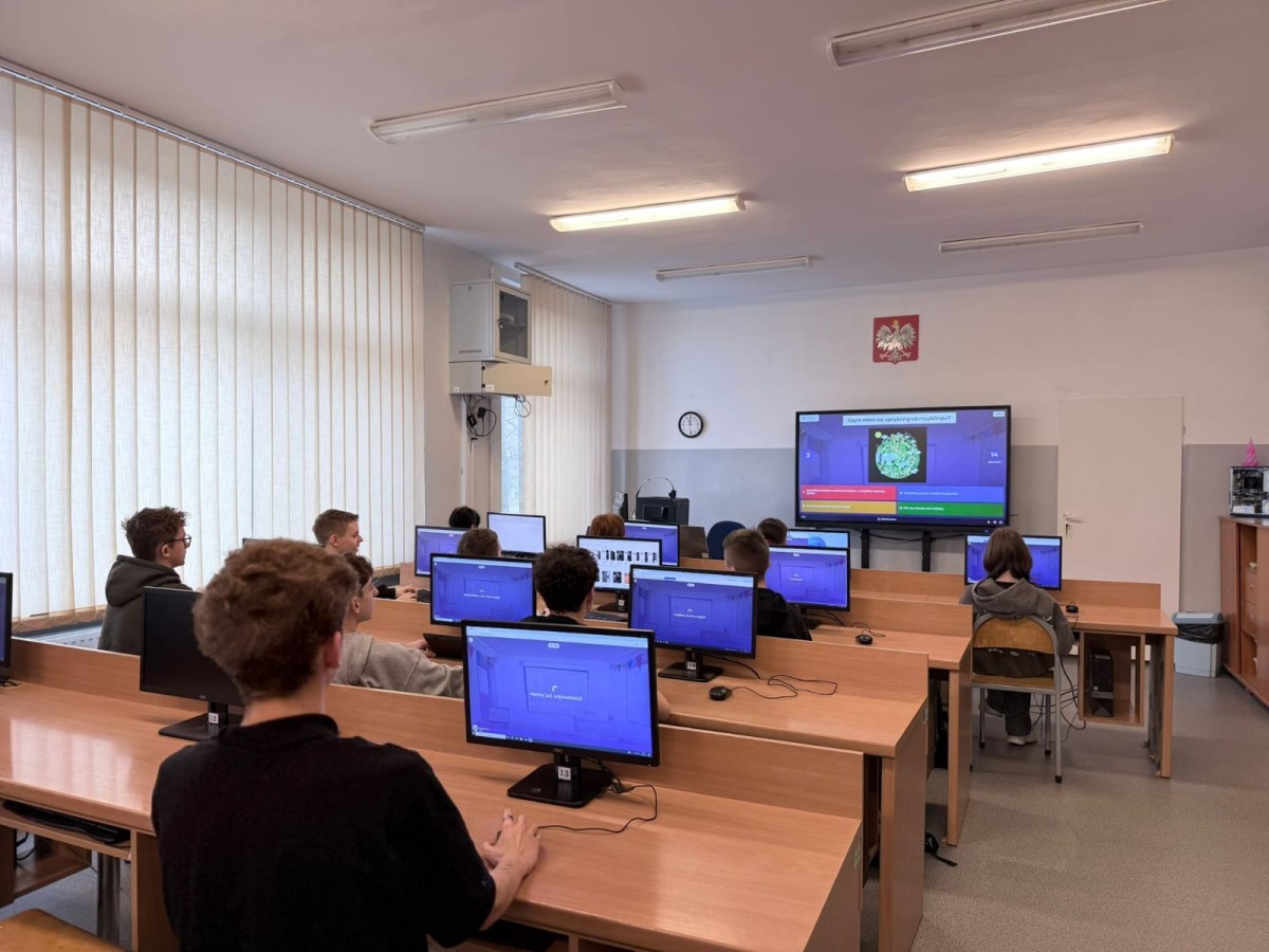 Quiz dotyczył zagadnień związanych z ochroną środowiska i klimatu, energią odnawialną, poszanowaniem zasobów wodnych, gospodarką odpadami, gospodarką cyrkularną, a także eko-transportem i elektromobilnością. Uczniowie mieli okazję sprawdzić i poszerzyć swoją wiedzę na temat proekologicznych postaw oraz działań, które mogą podejmować na co dzień.