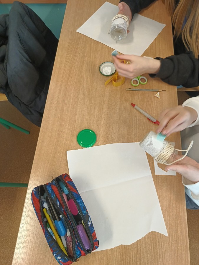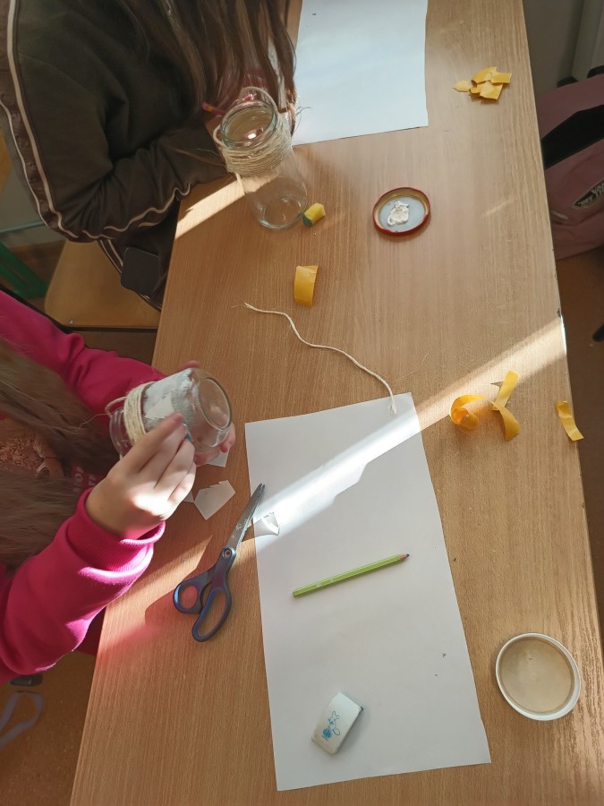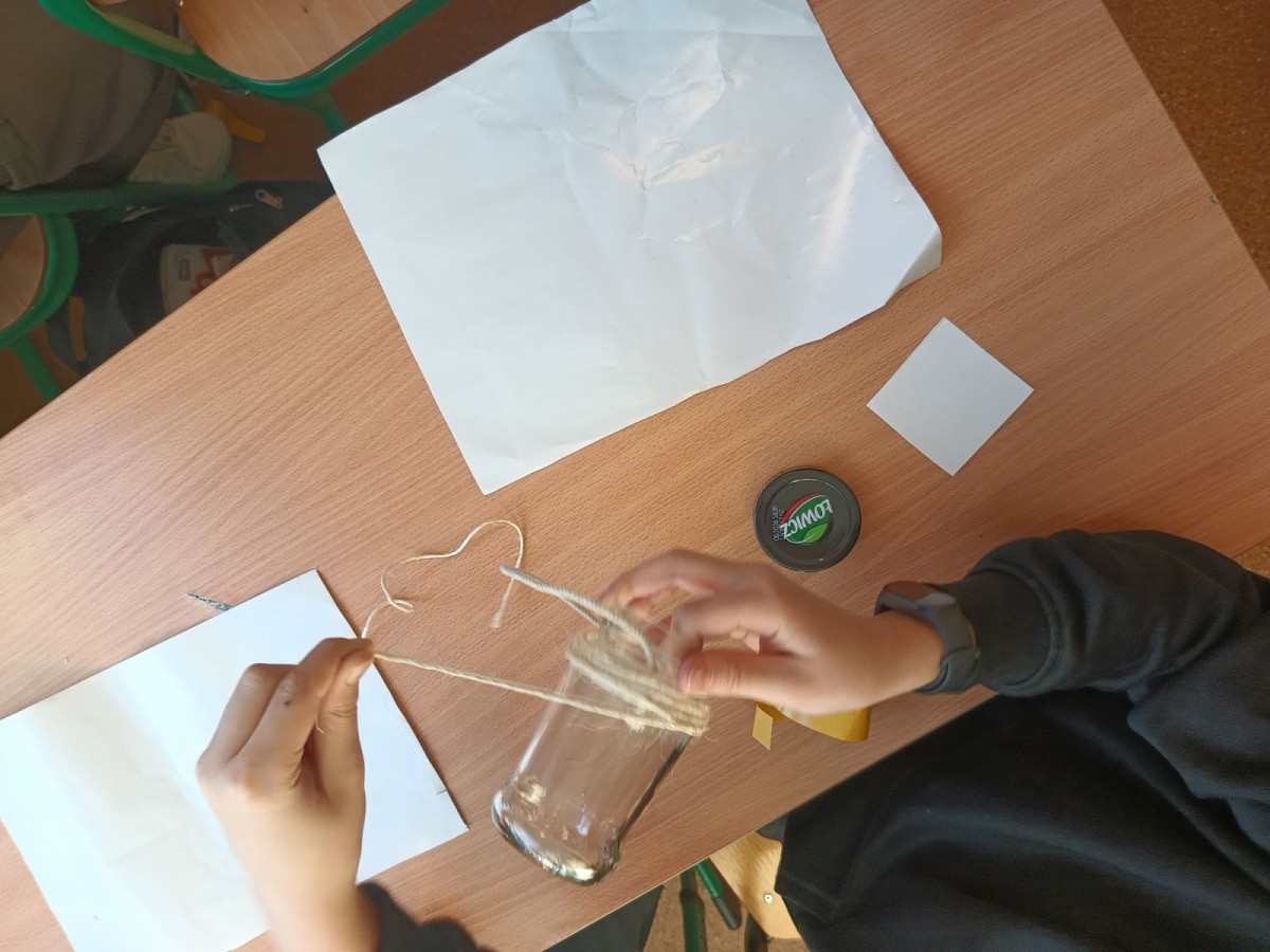 Podczas warsztatów uczniowie wykonali lampiony ze zużytych słoików, ucząc się w praktyce, jak w kreatywny sposób nadawać drugie życie przedmiotom codziennego użytku. Zajęcia spotkały się z dużym zainteresowaniem i zaangażowaniem uczniów, jednocześnie kształtując ich postawy proekologiczne. Z niecierpliwością czekamy na realizację kolejnego działania.