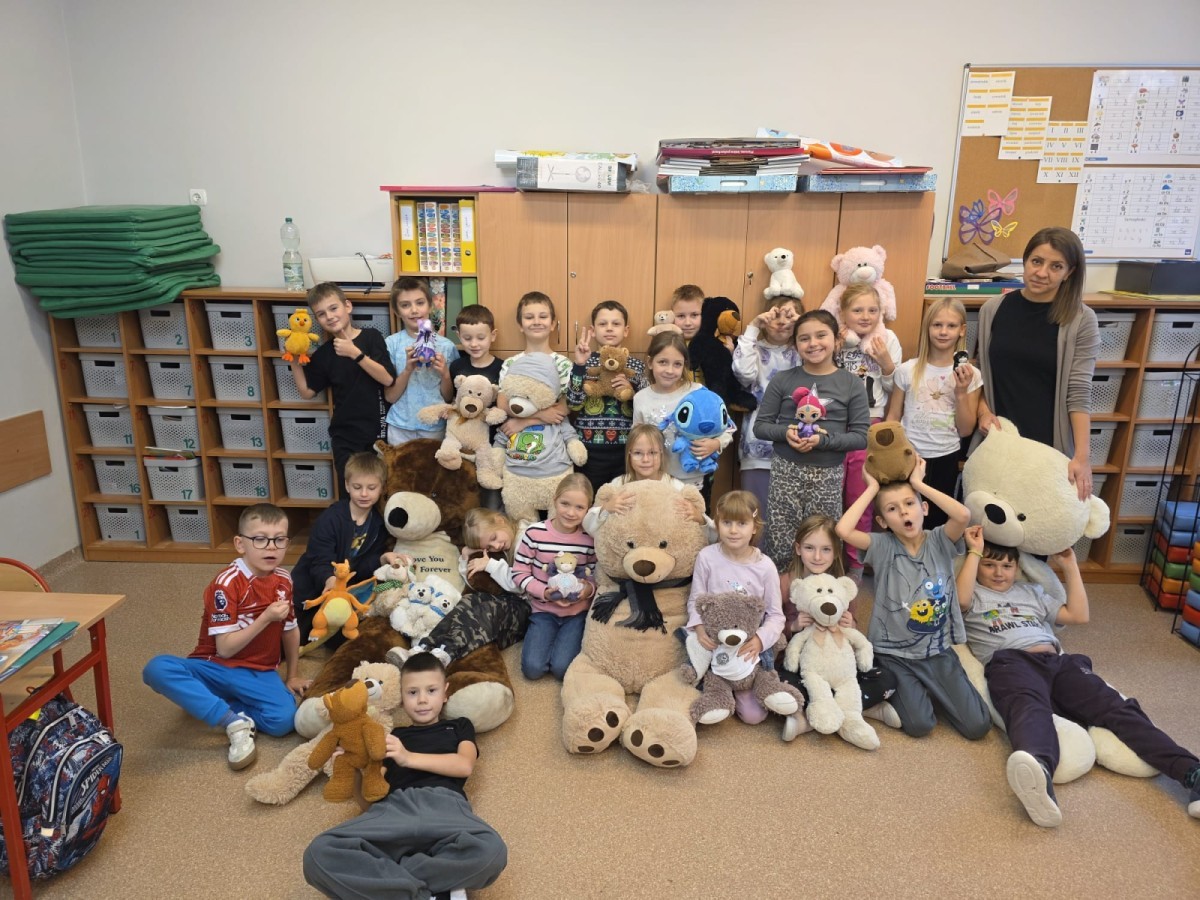 25 listopada 2025 r. obchodziliśmy w naszej szkole Dzień Pluszowego Misia. Tego dnia do sal i szkolnych korytarzy zawitały pluszowe przytulanki przyniesione przez dzieci. Uczniowie z dumą prezentowali swoje misie – małe, duże, kolorowe i te najstarsze, będące pamiątką z lat najmłodszych.