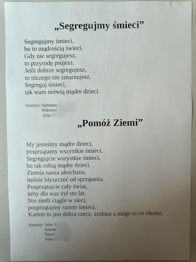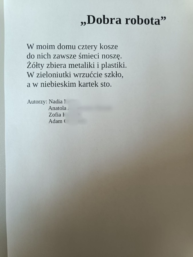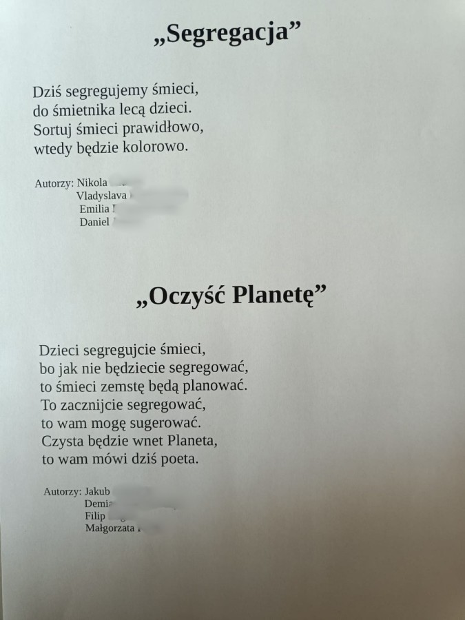 Z okazji Dnia Ziemi 22 kwietnia 2026 r. klasa 3 b składała rymowanki na temat segregacji śmierci.