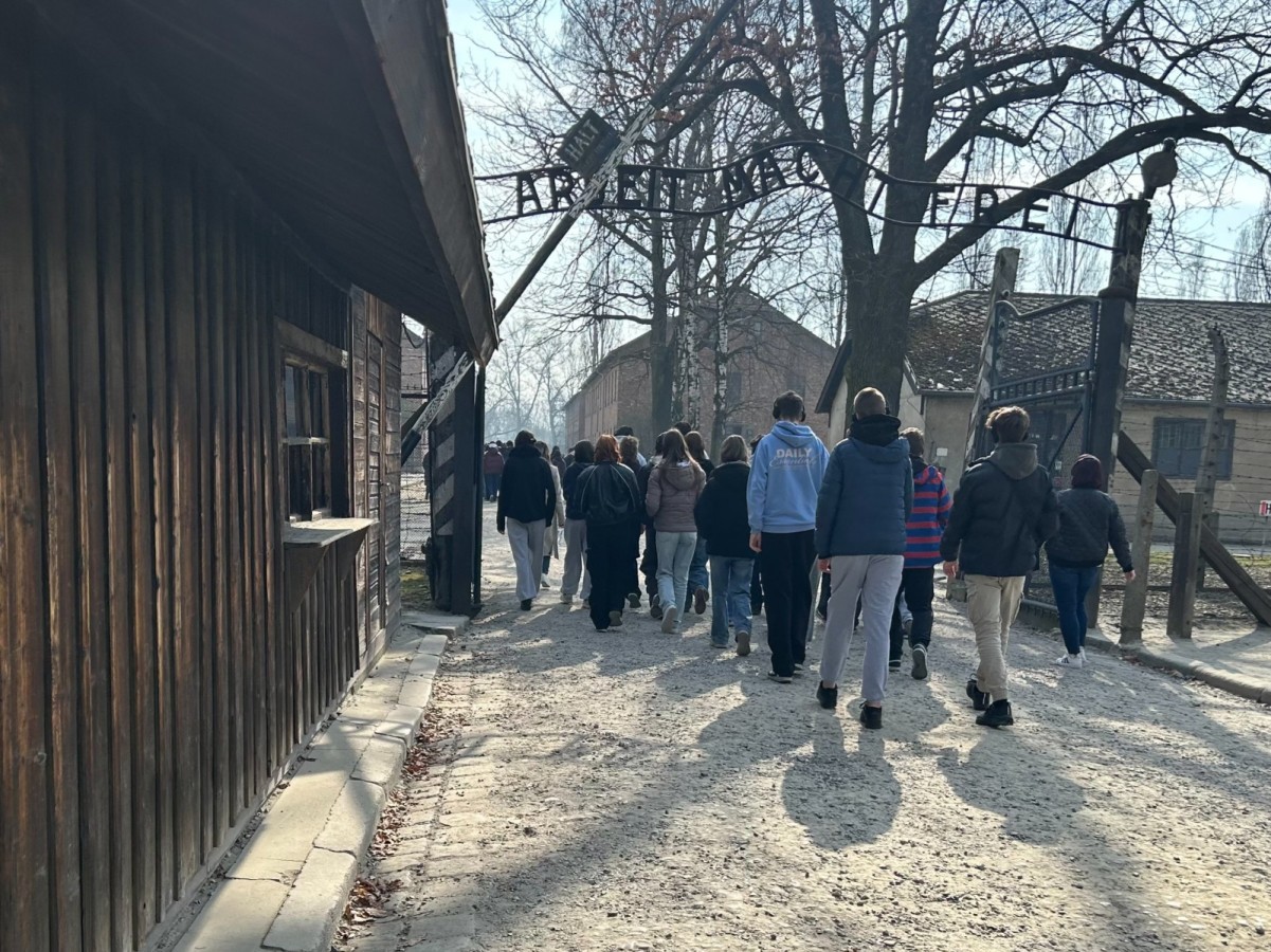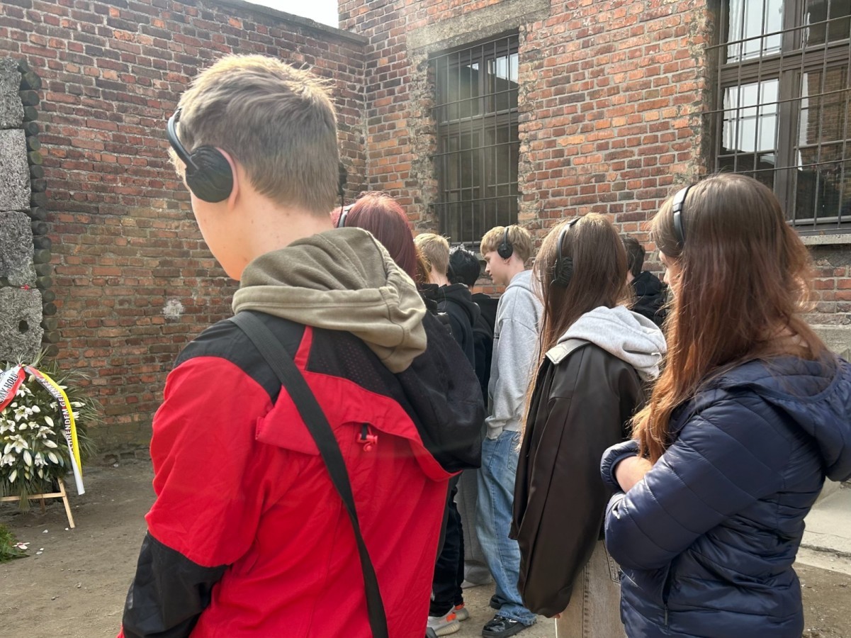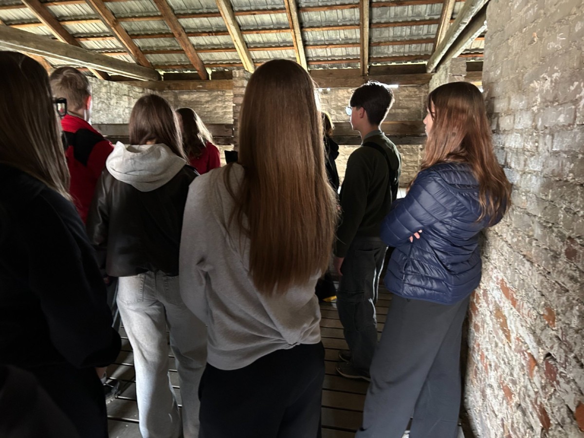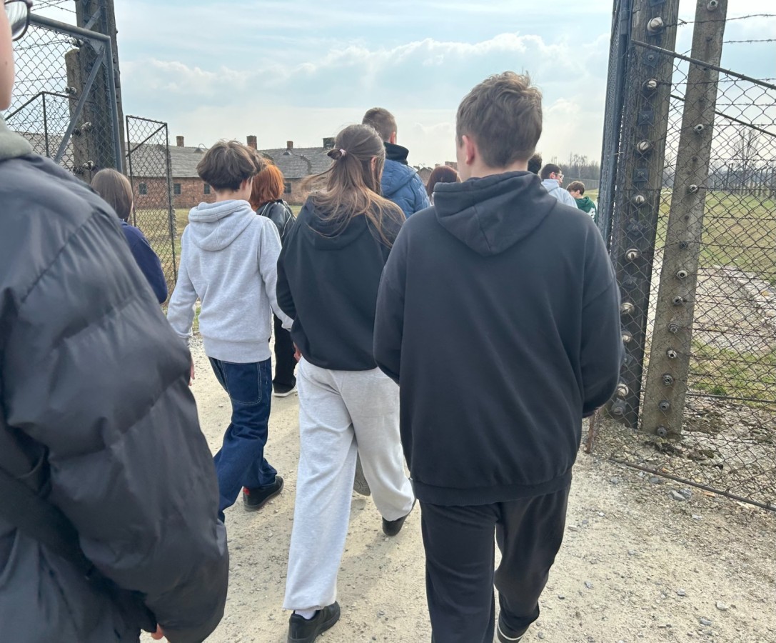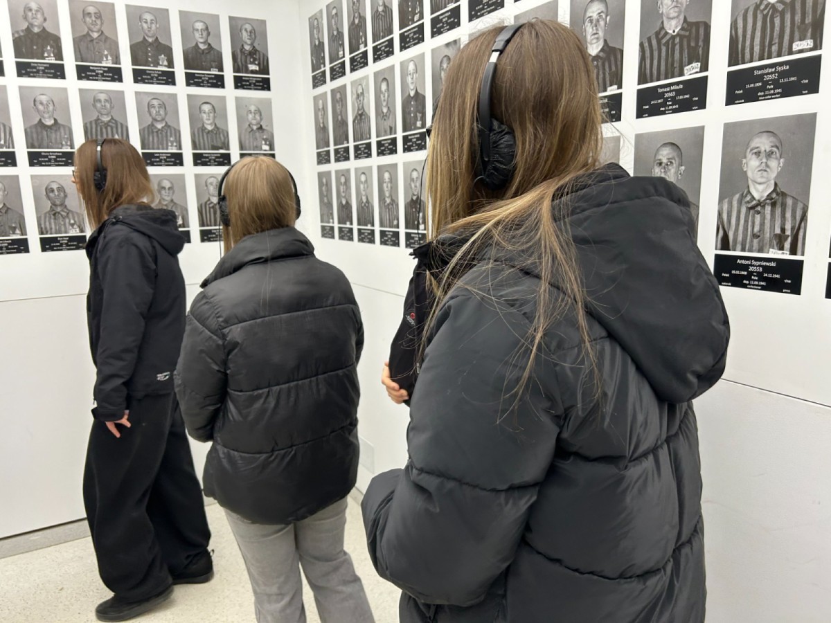 Po przyjeździe i przejściu kontroli bezpieczeństwa rozpoczęliśmy zwiedzanie od Auschwitz I. Już przy bramie z napisem „Arbeit Macht Frei” towarzyszyło nam poczucie powagi miejsca. W kolejnych punktach – na Placu Apelowym oraz w blokach muzealnych – poznawaliśmy codzienność więźniów, ich dramatyczne losy oraz realia funkcjonowania obozu. Szczególne wrażenie zrobiły na nas ekspozycje ukazujące życie i śmierć ludzi, dla których pobyt w obozie często oznaczał zaledwie kilka tygodni.