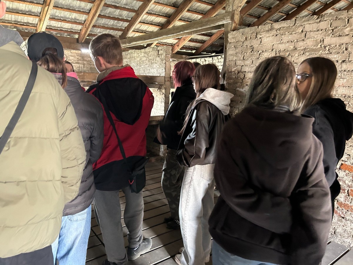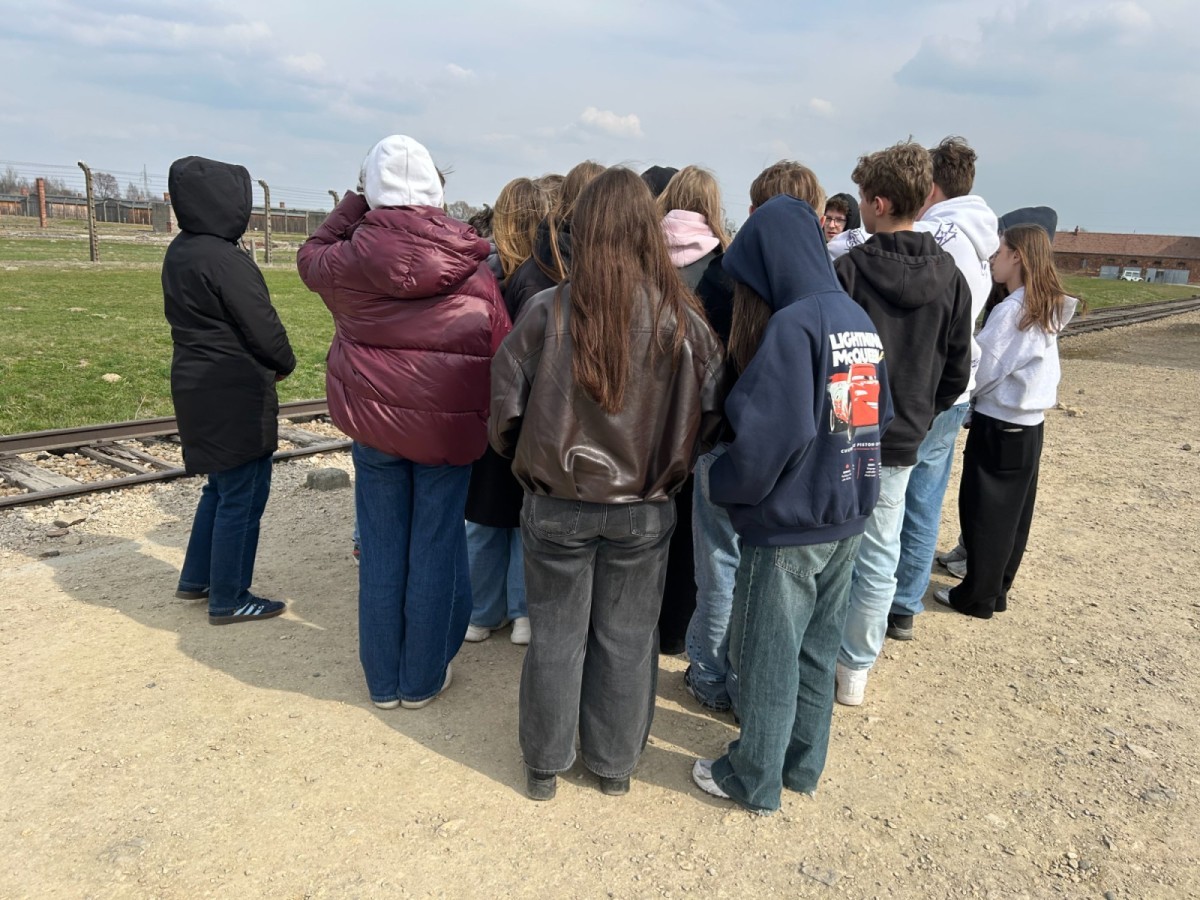 Kolejnym etapem wyjazdu była Brzezinka – Auschwitz II–Birkenau. Ogrom przestrzeni, widok torów prowadzących do obozu oraz ruiny krematoriów uświadomiły nam skalę tragedii, jaka się tam rozegrała. Na rampie wyładowczej poznaliśmy przebieg selekcji i zakończyliśmy zwiedzanie, oddając hołd wszystkim pomordowanym.