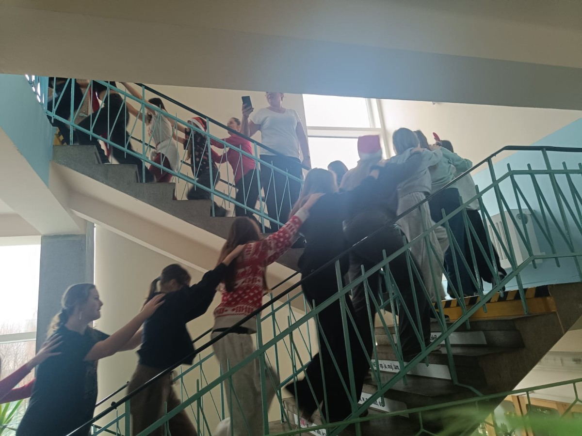 Z uśmiechami na twarzach wraz z Mikołajem przeszli korytarzami szkoły w pociągu. Już od samego rana można było poczuć radość i magię zbliżających się świąt.