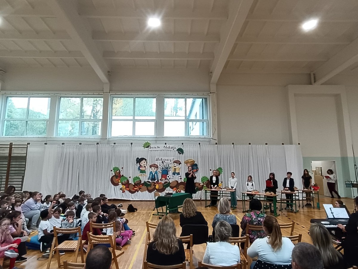 Podczas uroczystości pierwszoklasiści zaprezentowali piękny program artystyczny, a następnie złożyli ślubowanie i zostali symbolicznie pasowani przez Panią Dyrektor.