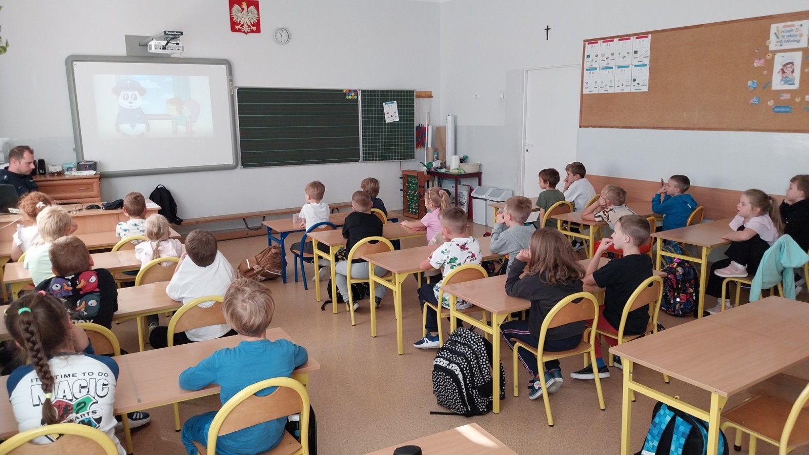 Zajęcia przebiegły w miłej atmosferze, a uczniowie chętnie zadawali pytania i dzielili się swoimi doświadczeniami. Spotkanie było doskonałą okazją, by utrwalić zasady bezpieczeństwa i uświadomić najmłodszym, jak ważna jest rozwaga w drodze do szkoły i z powrotem.