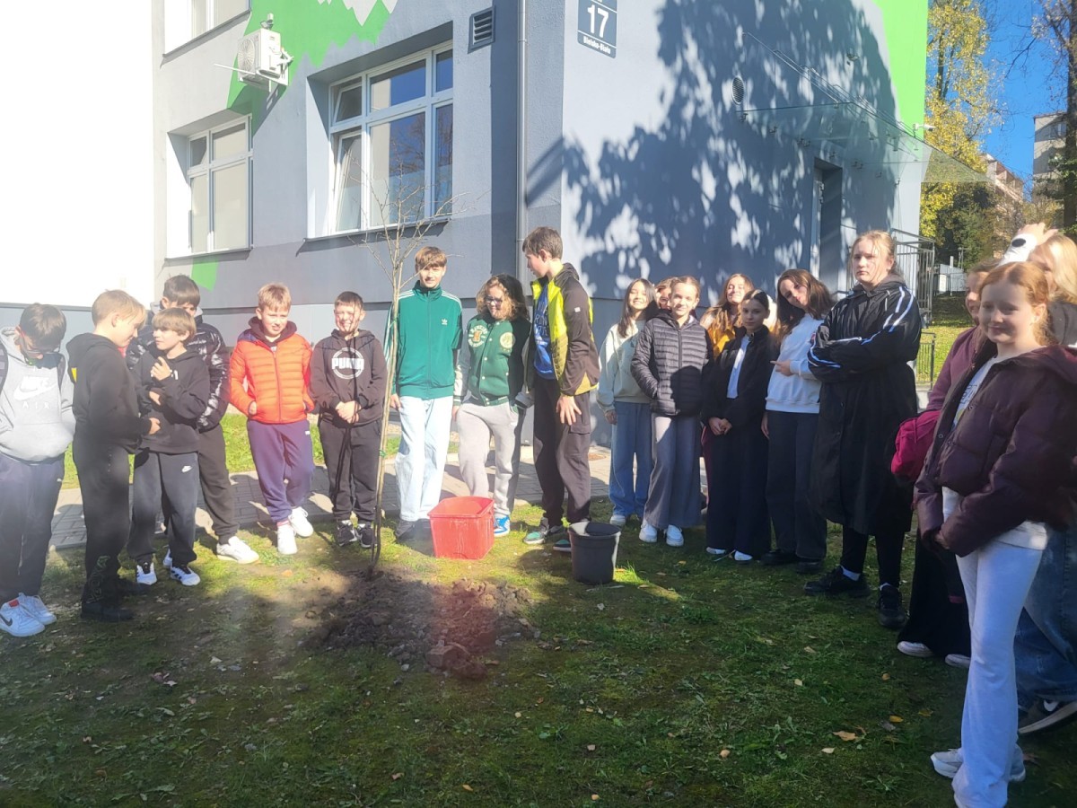 W ramach pierwszego etapu konkursu „Szanuj energię, chroń klimat”, organizowanego przez Urząd Miejski w Bielsku-Białej w ramach kampanii „Bielsko-Biała chroni klimat”, uczniowie klas 6c i 7c wzięli udział w akcji sadzenia drzew w kategoriach B2 i B3.