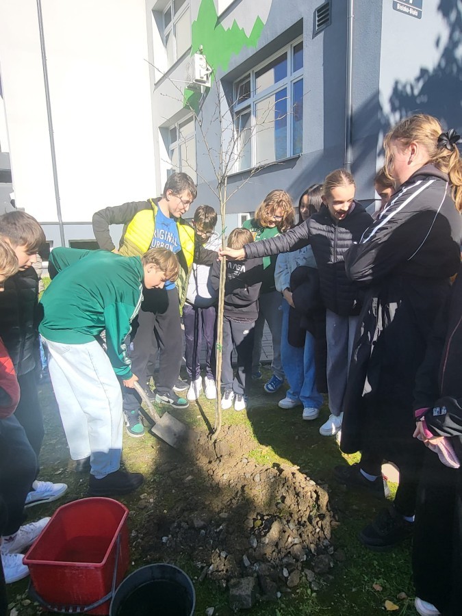 Dzięki wspólnej pracy uczniów, nauczycieli oraz Rady Rodziców, która sfinansowała zakup roślin, nasza szkoła zyskała dwa nowe drzewka, które będą przypominać o tym, jak ważne są nawet drobne kroki w trosce o planetę. 🌱