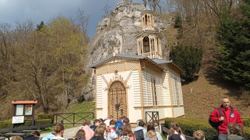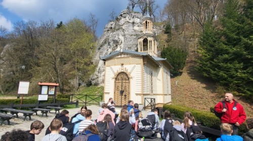Następnie udaliśmy się do Zamku w Ojcowie, gdzie poznaliśmy historię średniowiecznej warowni i podziwialiśmy jej malownicze ruiny. Odwiedziliśmy również urokliwą Kaplicę na Wodzie w Ojcowie, zbudowaną na potoku Prądnik, która zachwyciła wszystkich swoim nietypowym położeniem.