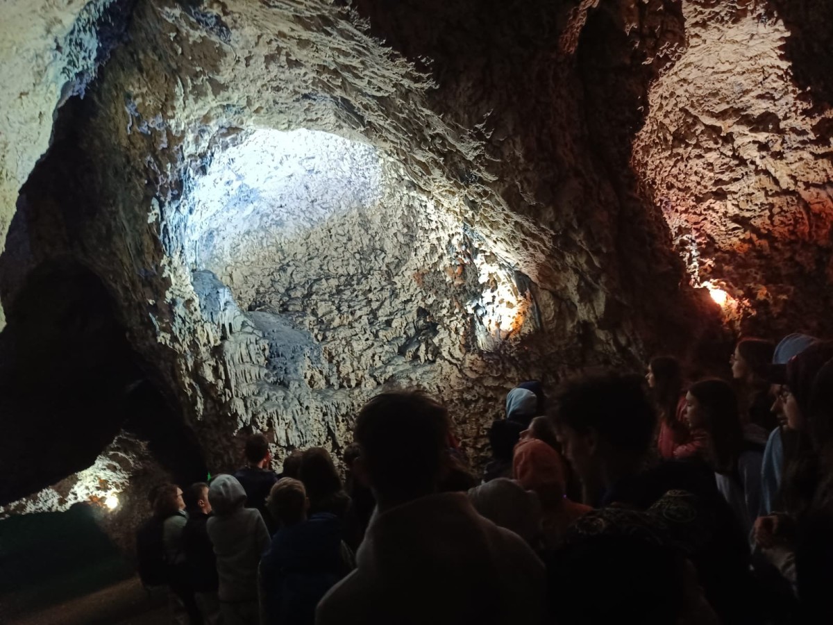 Na zakończenie wycieczki zwiedziliśmy Jaskinię Nietoperzową, jedną z największych jaskiń na terenie Jury Krakowsko-Częstochowskiej. Uczniowie mieli okazję zobaczyć niezwykłe formy skalne oraz dowiedzieć się więcej o życiu nietoperzy i historii jaskini.