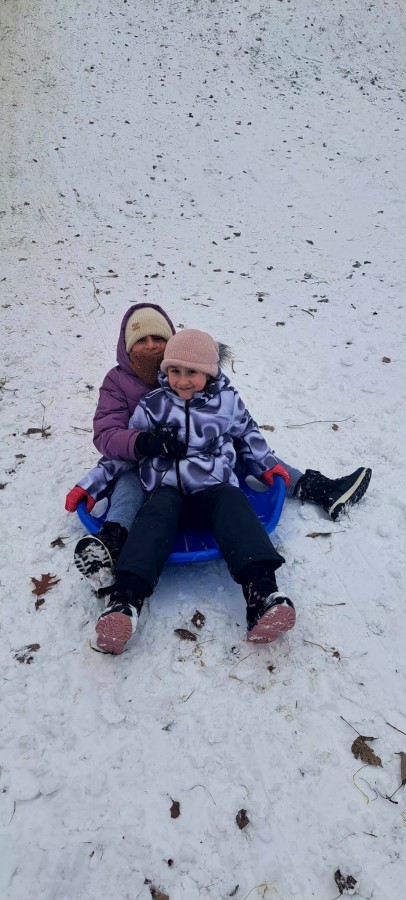 Zabawa na śniegu sprawiła dzieciom wiele uśmiechu i niezapomnianych wrażeń.