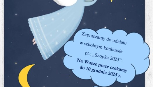 Zapraszamy wszystkich uczniów naszej szkoły do udziału w Szkolnym Konkursie "Szopka 2025". Tradycyjnie co roku w naszej szkole w okresie bo...